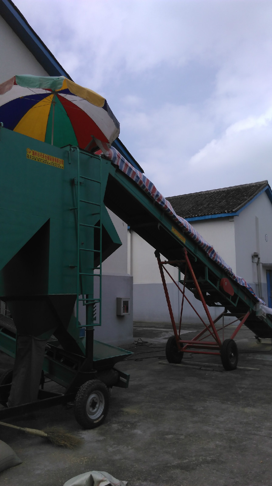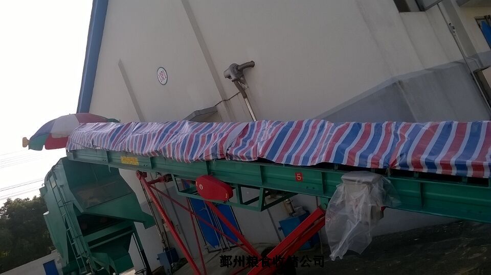“粮食质量严把关,服务质量上高度”。站长清晰的思路,准确的定位,与经验丰富的同志们你一句我一句就如何减少农户怨气,多提高为农服务质量展开热烈讨论。站长绞尽脑汁,同志们群策群力,“高高的花雨伞”就这样诞生了。花雨伞,本来是为手工过磅的职工遮阳用的,自从有了地磅,花雨伞闲置在设备库。现在把它装在高大去杂机漏斗口,高高扬起它七彩的“天空”,为传送入库的稻谷遮雨。更绝的是,开放式的输送机也被站长略施小计,显薄的编织蓬布长长支撑起传送带的空间。妙不可言,要不是倾盆大雨,下点雨,稻谷入库真不成问题!远远望去,花雨伞、编织蓬布,去杂机,输送机;听机器隆隆轰鸣,稻谷欢快入库,构画着朝阳粮站秋粮收购。